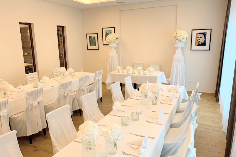 Die Sonnenterrasse eignet sich bei schönem Wetter für Empfänge und unser kompetentes Team aus Küche und Service begleitet Sie aufmerksam durch Ihre Veranstaltung.
